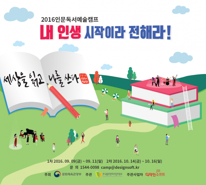 (서울=포커스뉴스) 디자인소프트는 수도권 지역 청년을 대상으로 하는 '2016 인문독서예술캠프'가 오는 9월과 10월 파주 출판문화도시에서 개최된다고 11일 밝혔다.