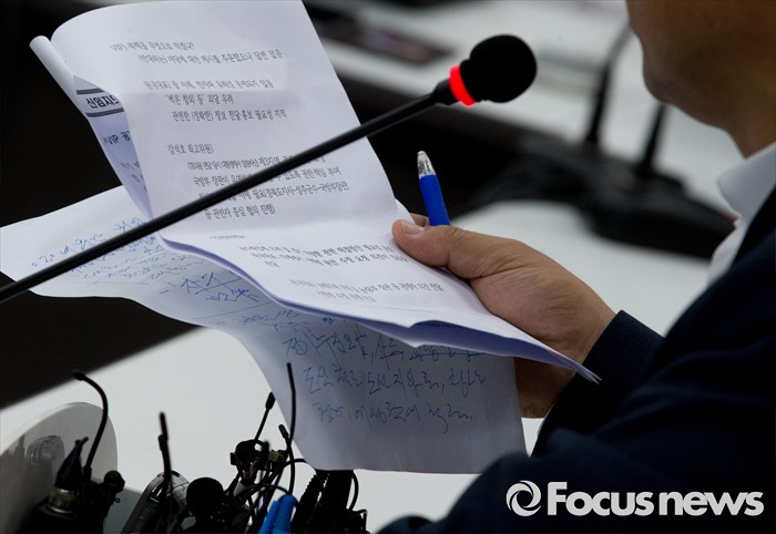 (서울=포커스뉴스) 이정현 새누리당 대표가 11일 오후 서울 여의도 국회에서 박근혜 대통령과의 오찬 결과 브리핑을 하고 있다.