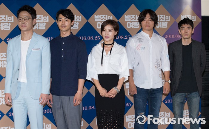 | △ 포즈 취하는 영화 '범죄의 여왕' 출연 배우들 |