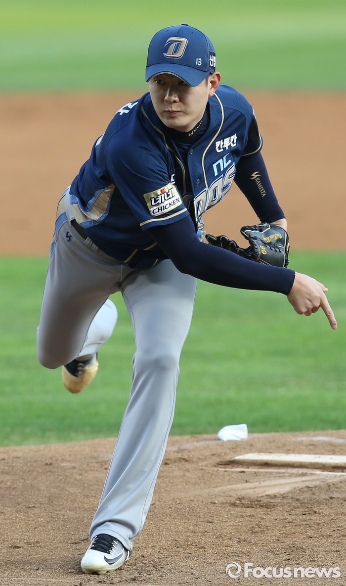 (서울=포커스뉴스) 11일 서울 잠실구장에서 열린 2016 프로야구 NC-LG 경기에서 1회말 NC 선발투수 최금강이 투구하고 있다.