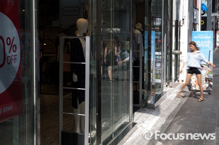산업부는 "지난 7월 중 두 차례에 걸쳐 점검한 결과 나타난 위반율(5.3%)에 비해서는 낮아졌다"고 설명했다.(서울=포커스뉴스) 10일 오후 서울 중구 명동의 한 옷가게에서 개문냉방 영업을 하고 있다. 지난 9일 폭염으로 인한 전력 수요 급증에 정부가 오는 11일부터 개문냉방 업소 단속에 나선다고 밝혔다. 2016.08.10 이승배 기자