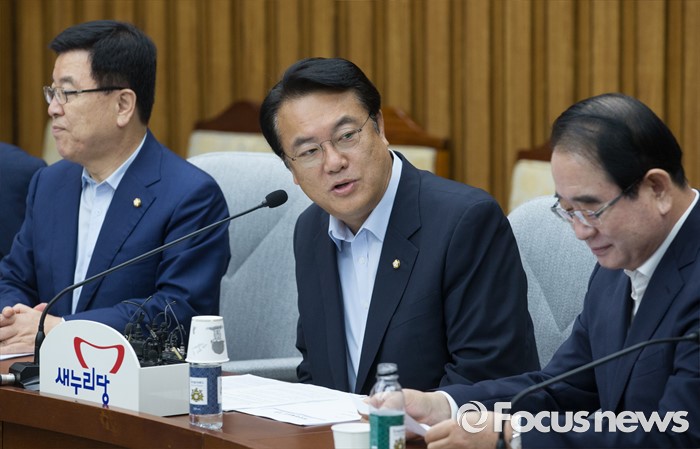 (서울=포커스뉴스) 정진석 새누리당 원내대표가 12일 "야당은 추경안 처리의 발목을 붙잡고 내년 본예산의 손목까지 잡고 있는 격이다. 어떻게 민생을 얘기할 자격이 있는가"라며 추경안의 신속한 처리를 요구했다.