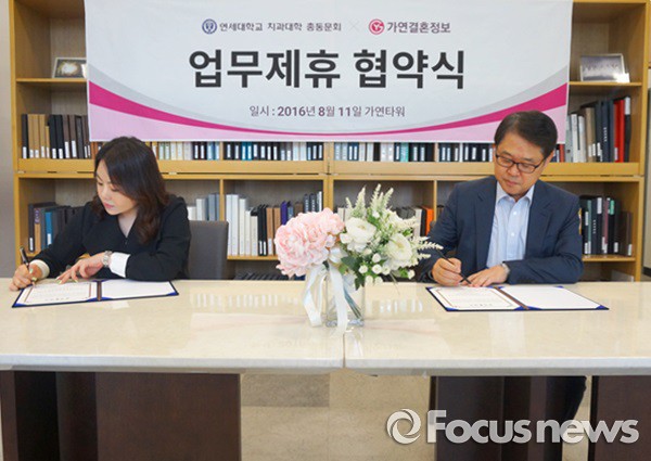 (서울=포커스뉴스) 결혼정보회사 가연이 연세대 치과대학 총동문회와 결혼정보서비스 제공 업무협약(MOU)을 체결했다고 12일 밝혔다.
